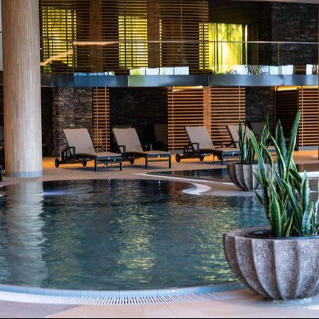 Inside: 5,000m² of spa space. Panoramic pools. Steam rooms and saunas. A spa menu that doesn’t just pamper — but downregulates.